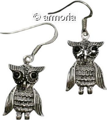 Boucles d'oreilles Hibou aux yeux noirs en argent