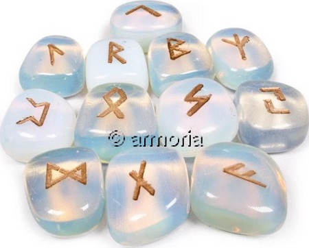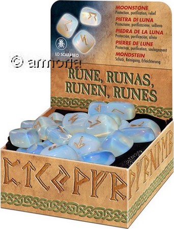 Jeu de 25 runes gravées sur pierre de lune, marque Lo SCARABEO.
