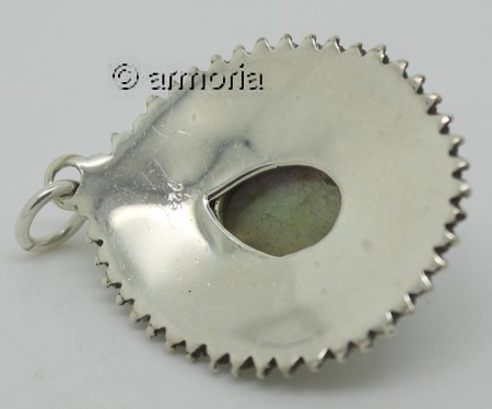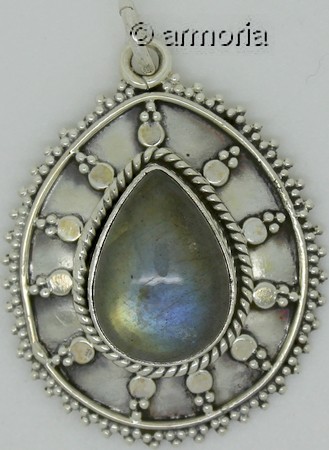 Très beau pendentif formé d'une goutte en labradorite entourée d'argent décoré