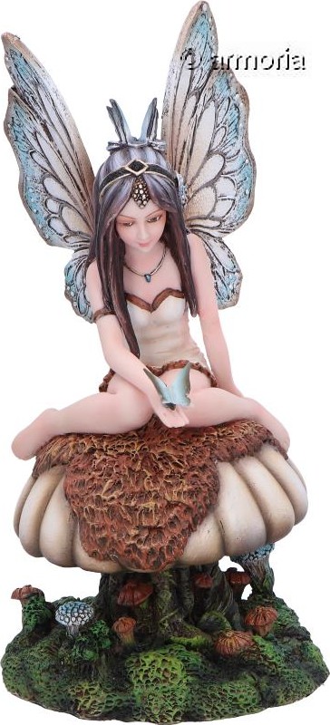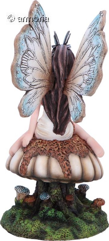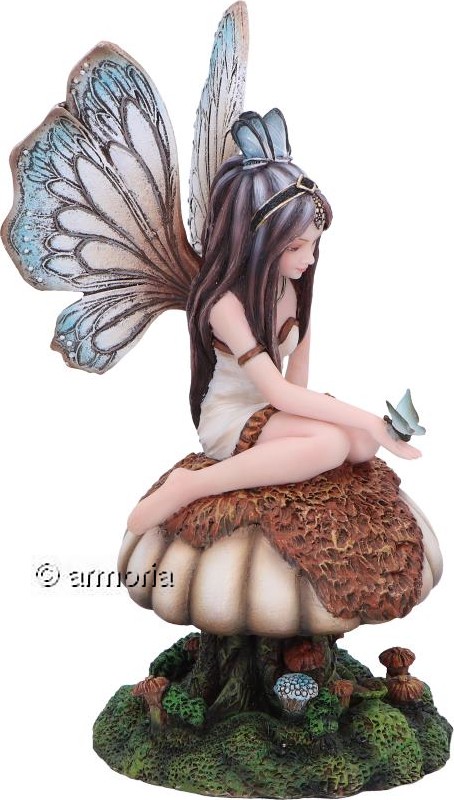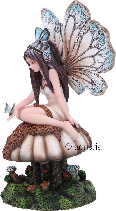Figurine Fée au Papillon bleu assise sur Champignon