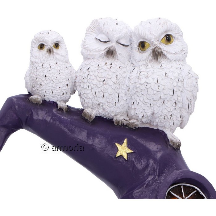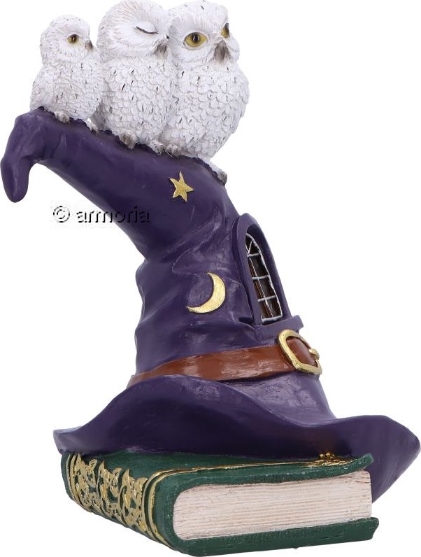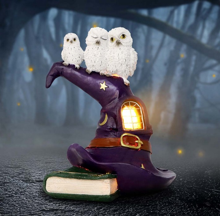 Figurine Chouettes Blanches sur Chapeau de Sorcière