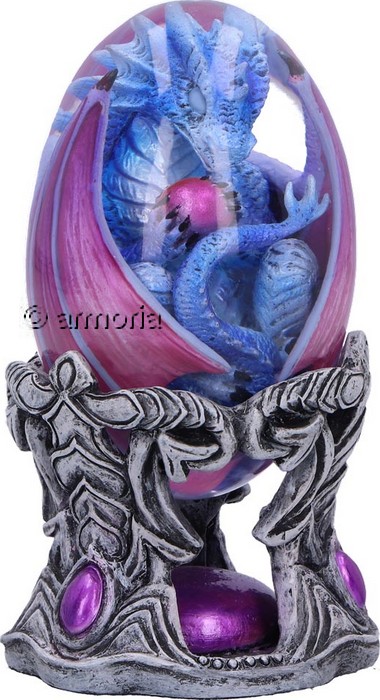Très originale figurine de bébé dragon bleu dans son oeuf, avec son support