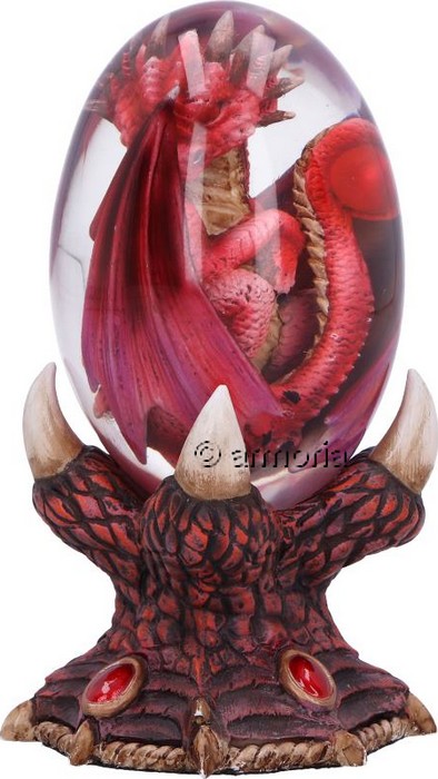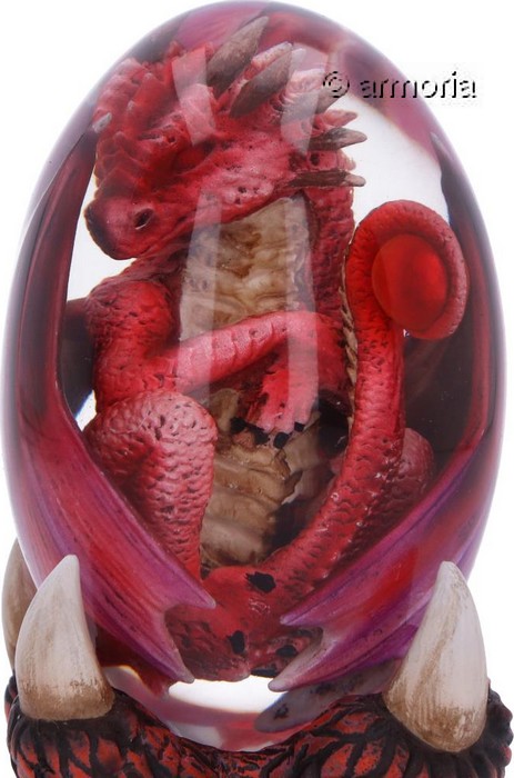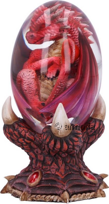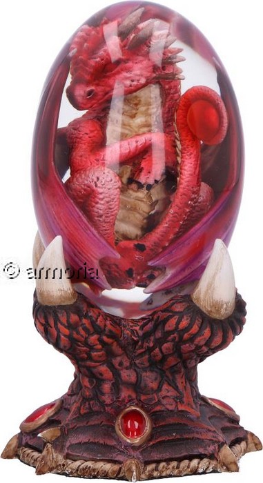 Très originale figurine de bébé dragon rouge dans son oeuf, avec son support