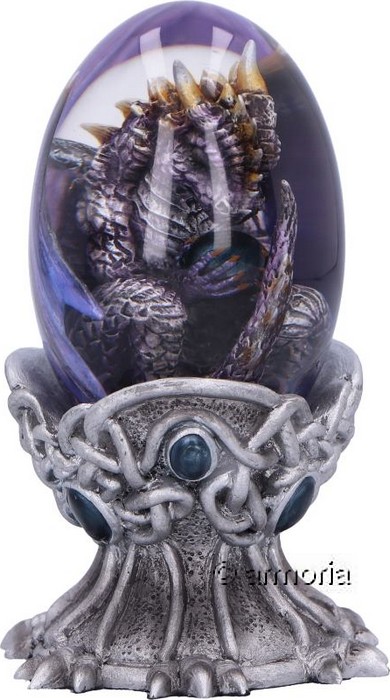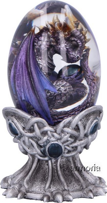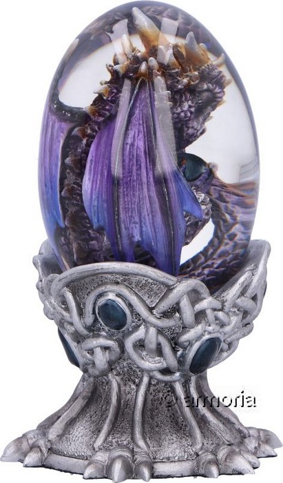 Très originale figurine de bébé dragon violet-gris dans son oeuf, avec son support