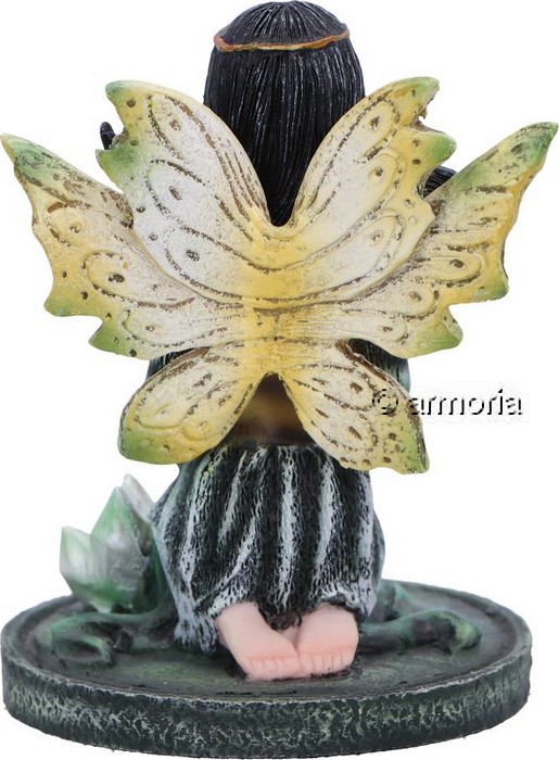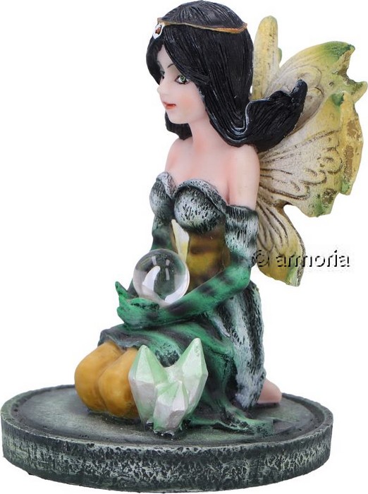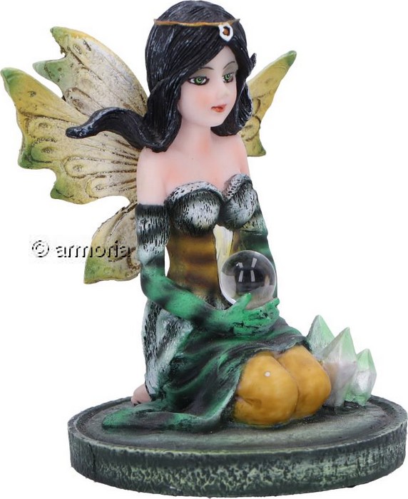 Jolie petite figurine d'une fée verte tenant une boule de cristal