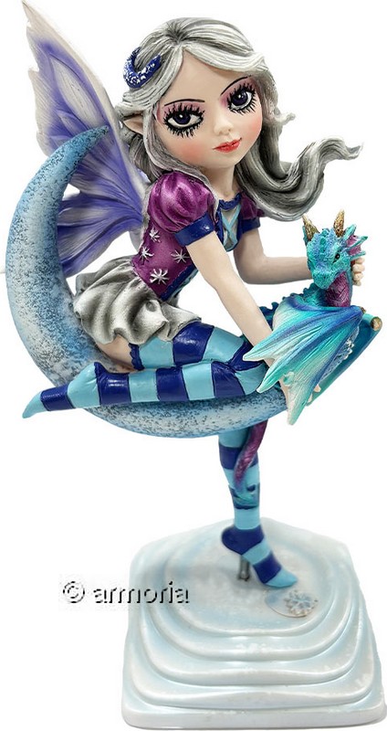 Figurine Fée sur Lune avec Dragon